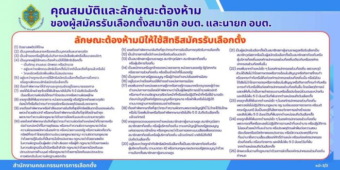 คุณสมบัติและุลักษณะต้องห้ามของผู้สมัครรับเลือกตั้งสมาชิก อบต. และ นายก อบต.